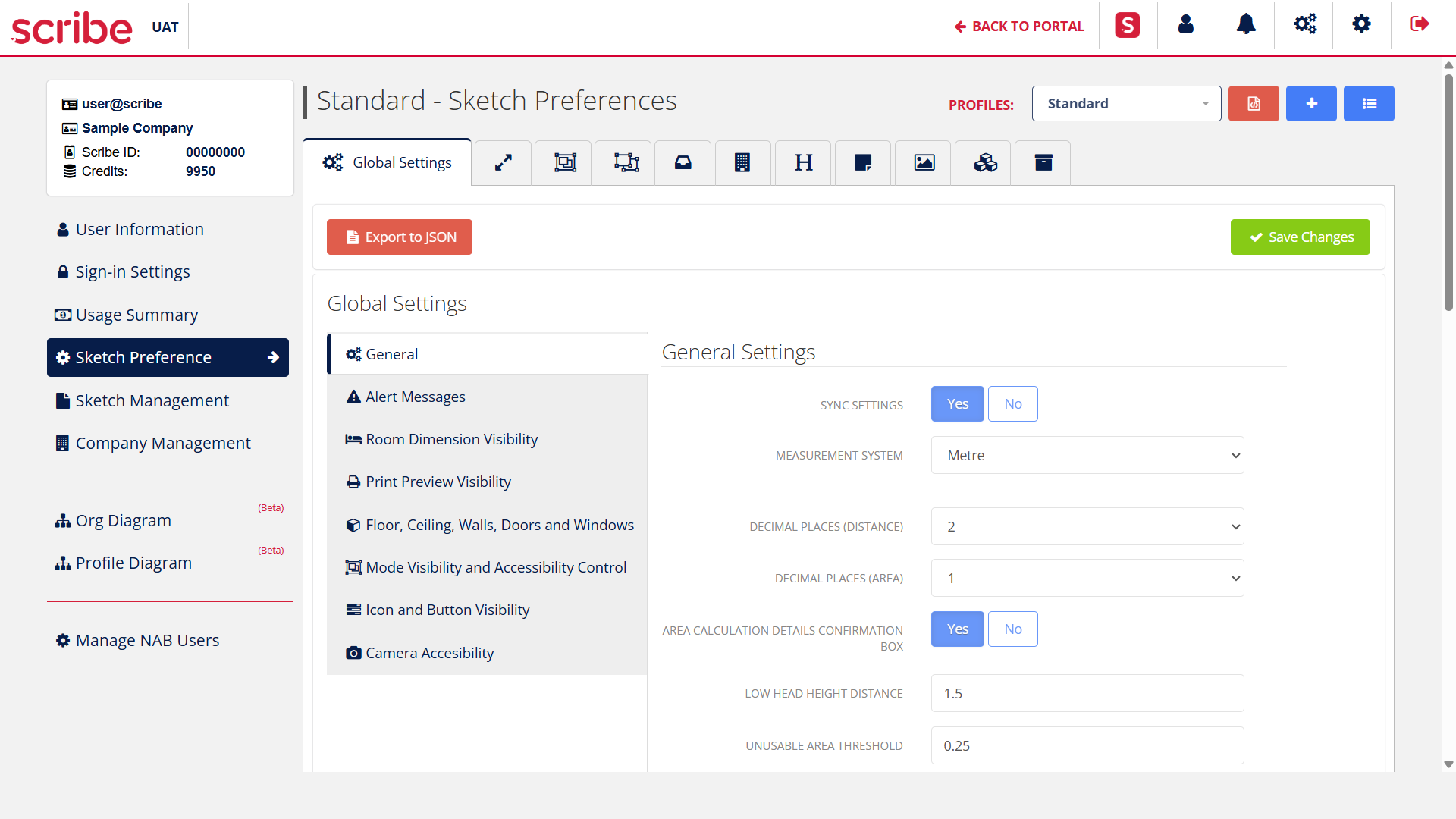 Scribe has a system of profiles that allow pre-set configuration settings to be applied to your sketch including Room names, storey names, wall colours, unit of measurements, data collection etc. You can have a different profile for each type of job you carry out which will automatically have the most appropriate settings for the job. For larger customers we also have Template profiles that allow you to maintain central control to ensure consistent quality and compliance of sketches across the organisation. All elements of the Scribe platform, how Scribe operates, draws, collects data, calculates areas, and exports data are all controlled centrally by Profiles. Profiles are easy to develop and we can assist you in the configuration of Scribe to suit your corporate structure, compliance, and job requirement needs.